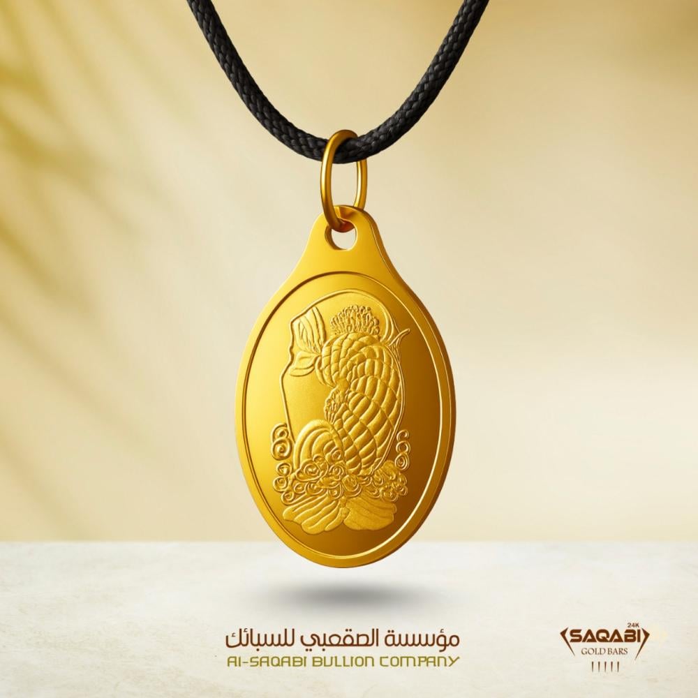 سبيكة ذهب بيضاوية تعليقة عيار 24 - وزن 5 جرام