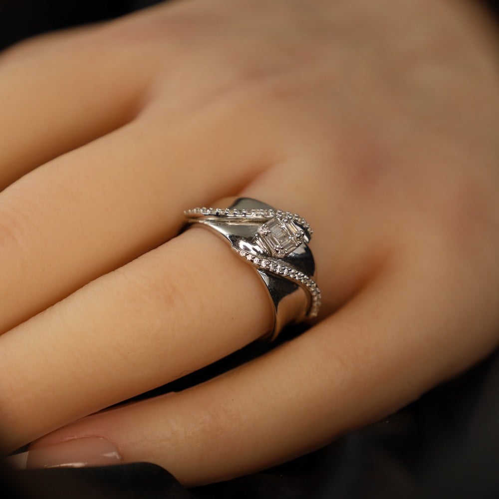 خاتم أبيض تطبيق الماس مقاس 13.5