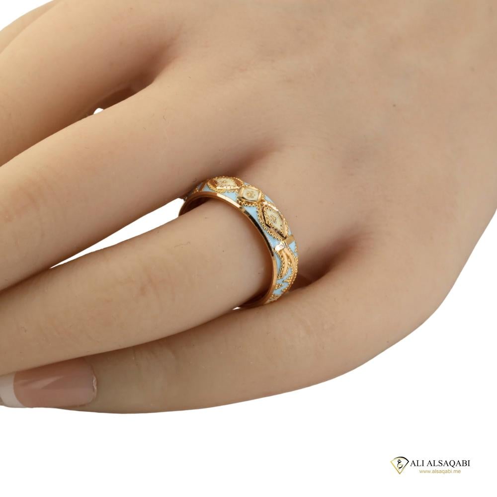 مواصفات خواتم ذهبي دبلة هندي باللون السماوي :