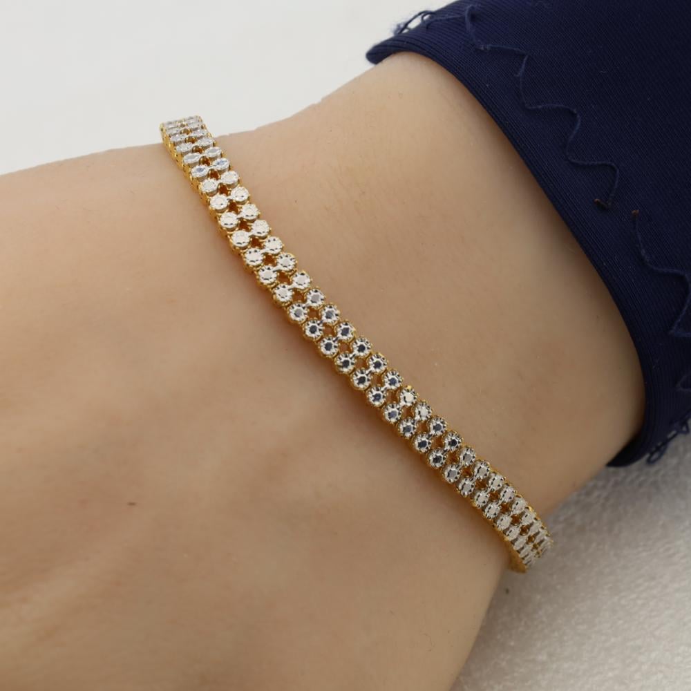 • تصميم أنيق وفاخر: تأتي سوارة التنس بتصميم دورين عريض ما يمنحها حضور لافت ومعبر عن الفخامة لتكون محط الأنظار في أي مناسبة