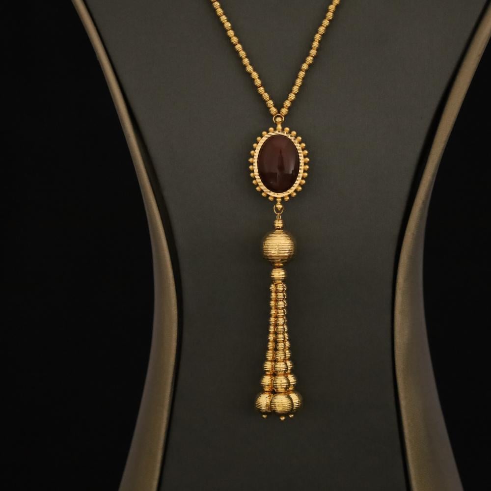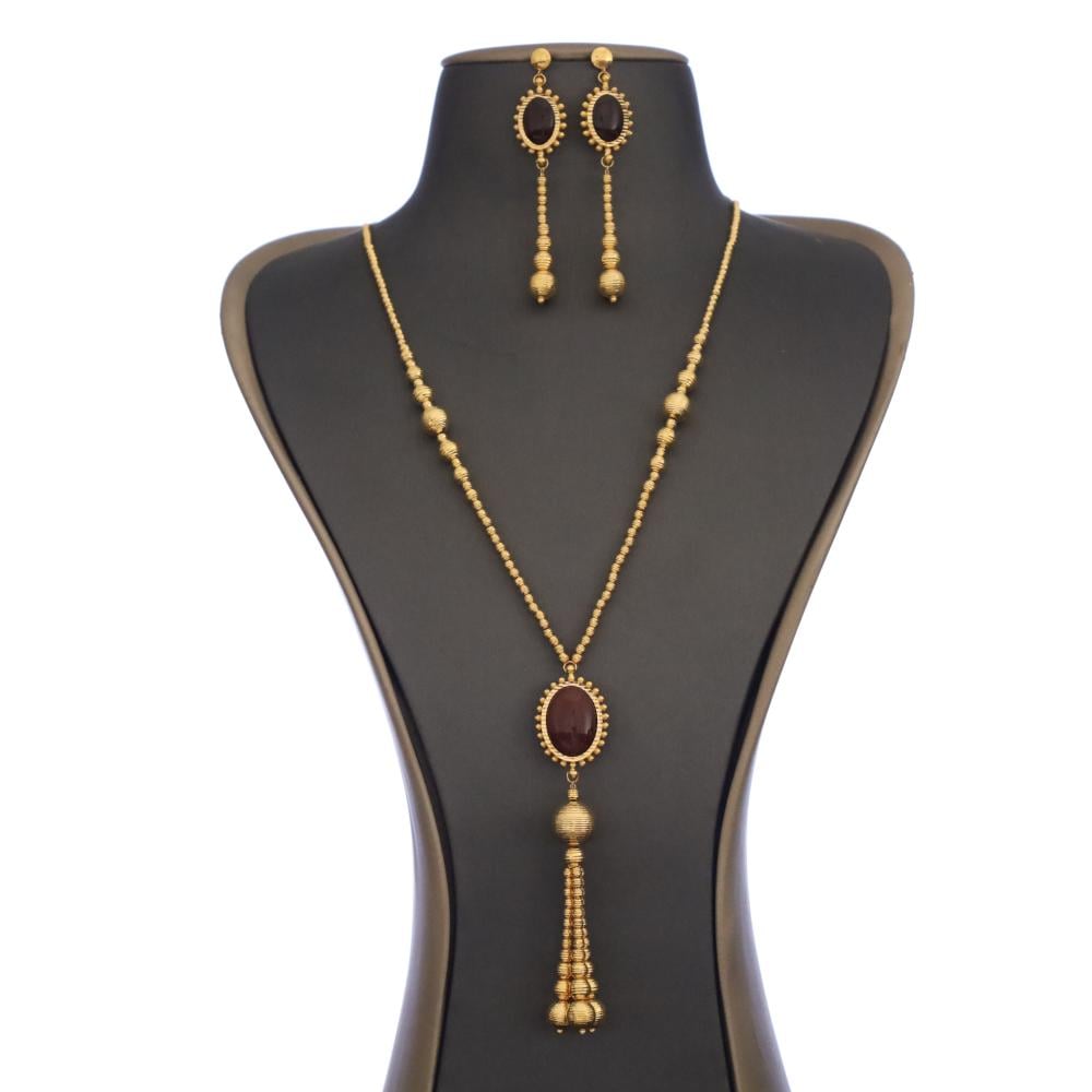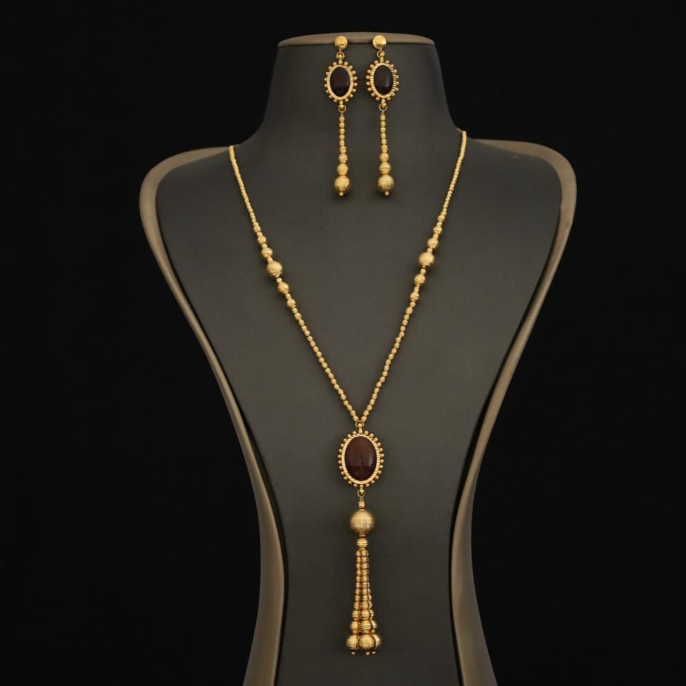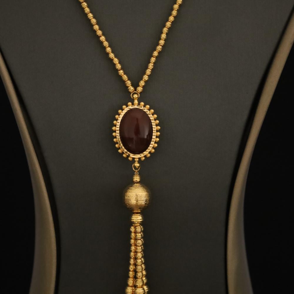 طقم عقد سبحة مع الحلقان مزين بحجر العقيق الفاخر
