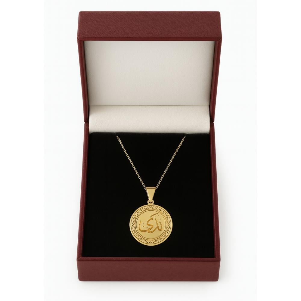 قلادة ذهب دئرية مزخرف مع السلسال من الذهب الصافي عيار 18